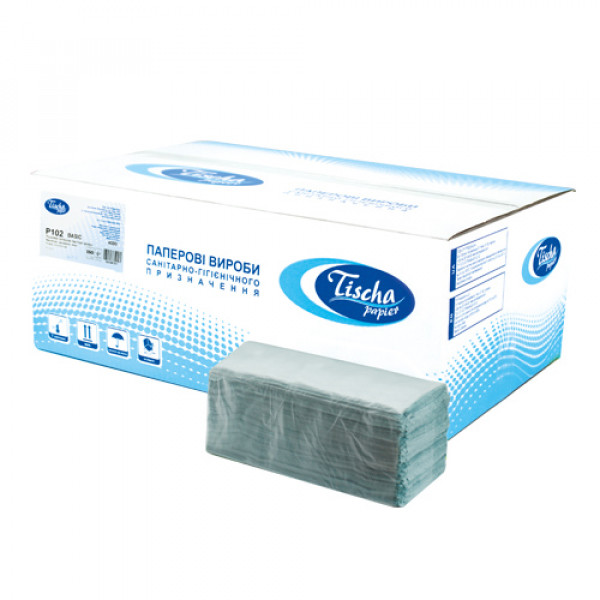 Paper hand towels BASIC are made of recycled paper. 1-ply V-fold towels fit to dispensers of most known trademarks. These types provide an economical selection of paper due to the special laying of sheet towels in packs, towels are given in the form of an unfolded sheet ready for use.