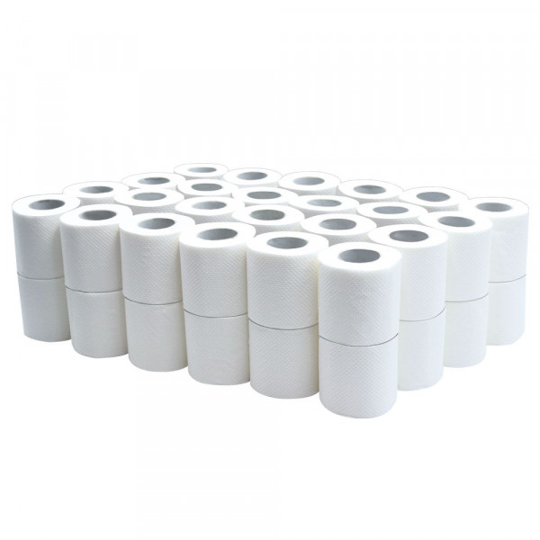 Soft, strong two-layer toilet paper of white color on the sleeve. 100% natural material cellulose. Paper in a roll with an embossing and perforation, which provides convenience in use (when tearing off a flat sheet). Toilet paper with a sleeve - inside the roll there is a hole for putting on the holder.