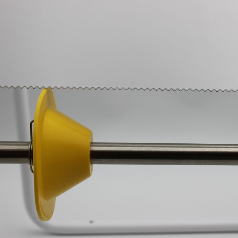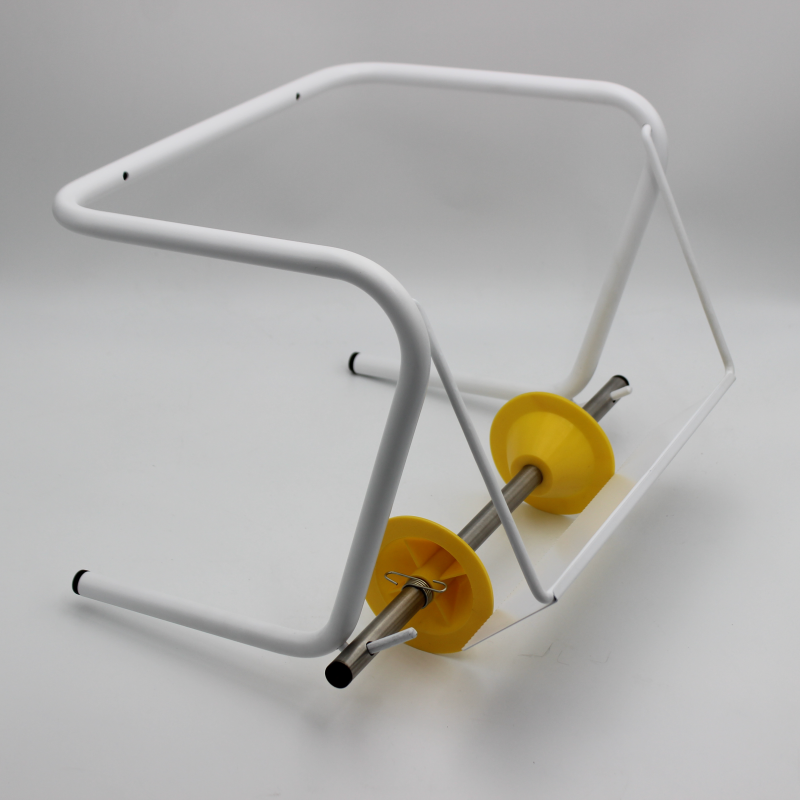 Paper roll holder . This wall holder is used for industrial roll-on wiping paper towels. Made of metal coated with white epoxy paint. Breakage resistant. Has a towel cutter.