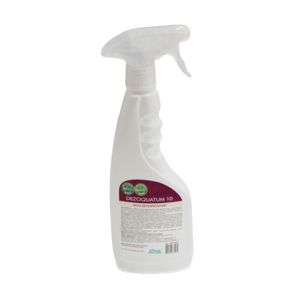 Disinfectant with a sprayer for quick disinfection of small surfaces (tables, chairs, door handles, handrails, water mixers, dispensers, toilet lids). The tool is effective against gram-positive and gram-negative bacteria, shows an antiviral effect against the poliomyelitis virus and, accordingly, against less resistant viruses, in particular - influenza, human immunodeficiency virus, measles, epidemic parotitis, viral hepatitis A, B, C, D, noro-, adenoviruses , rotavirus gastroenteritis, ECHO, Coxsackie, human coronaviruses, including SARS-CoV-2, which causes COVID-19, and other viruses.